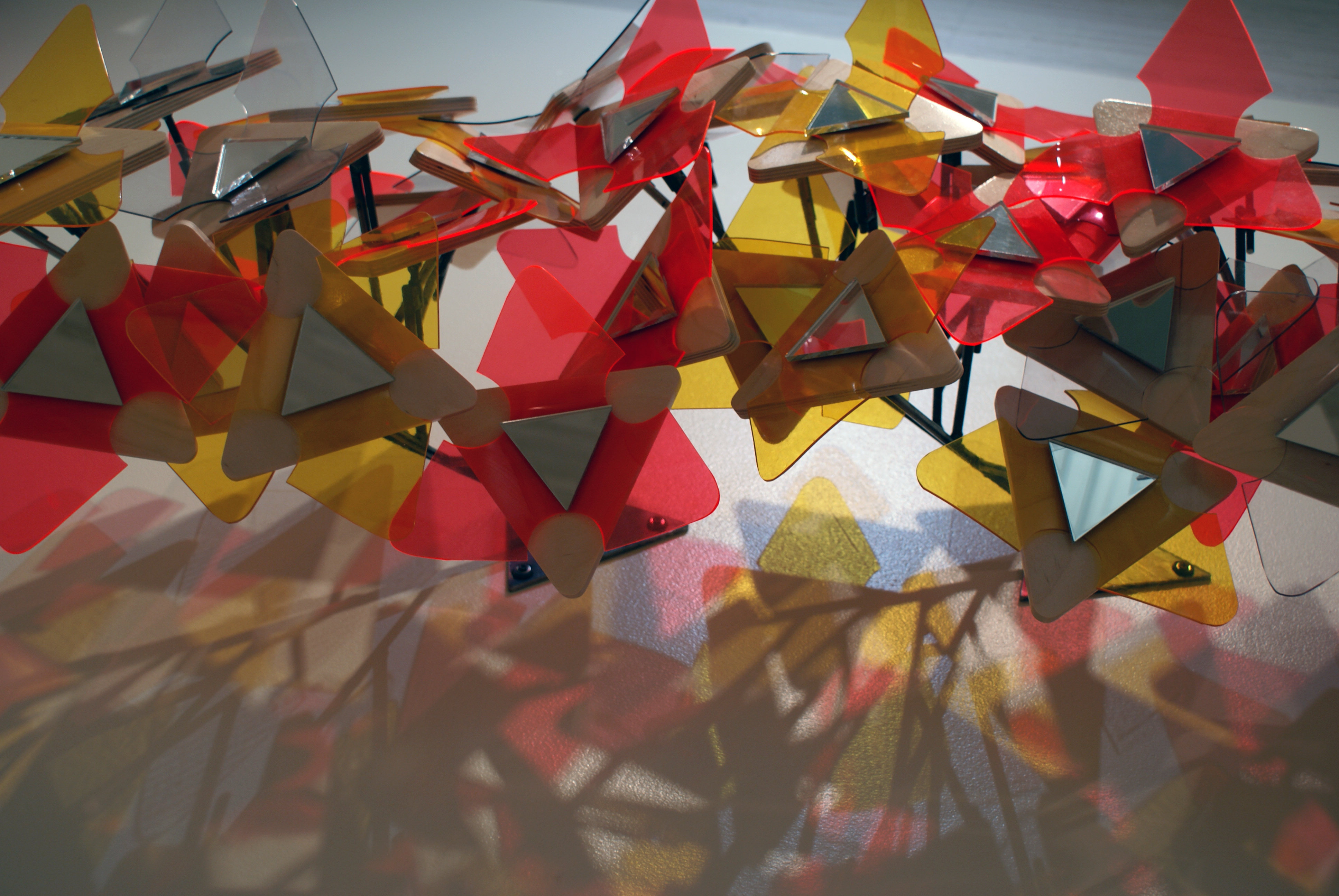 Hand-cut Vinyl, Laser-cut Acrylic Mirrors, Wood, Steel