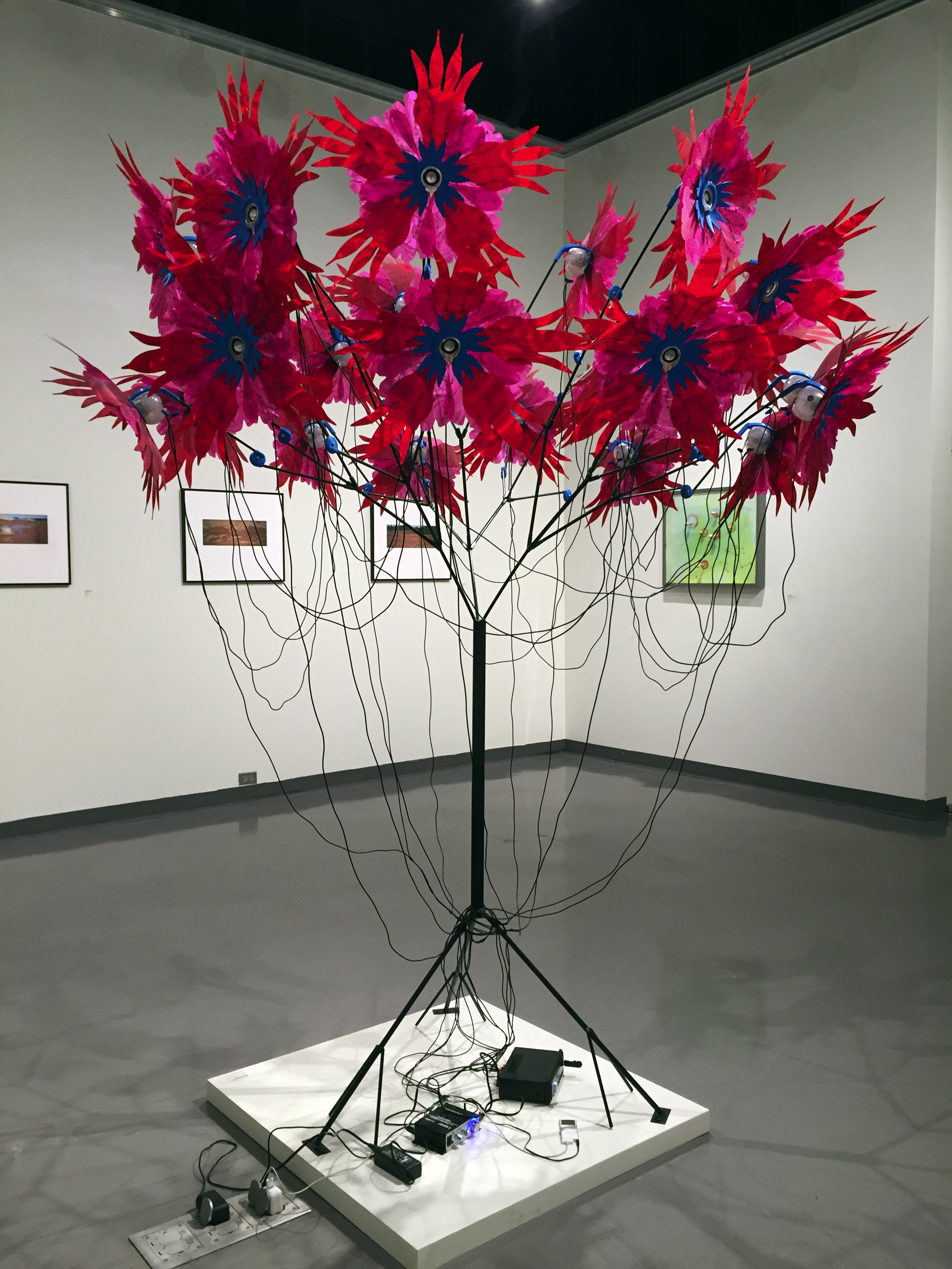 | Printed PLA Plastic, Steel, Apple G4 Speakers, Lenticular Film, Wire, Amplifiers, Sound Sources |